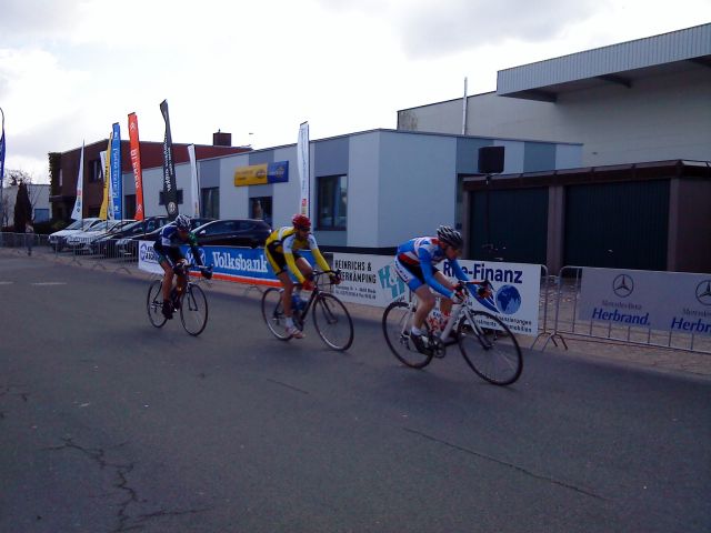 und windig. Am Samstag in Ascheffel war das Rennen an sich sehr schön, nur das Wetter... Im Rennverlauf bin ich immer wieder Attacken mitgefahren und war sehr aktiv, zu aktiv. Als ich leider nicht in der Entscheidenen Gruppe mitfahren konnte, war klar, dass es im Sprint aus dem Restfeld von 25 von 200 Fahrern um Platz 5 geht. Problem: Ich konnte mich nicht mehr bewegen, bremsen oder auch schalten. Ich war total fertig mit der Welt. 500m vor dem Ziel noch an 3. Position. 400m vor dem Ziel eine Miniwelle und ich habe solche Krämpfe bekommen, dass gar nicht mehr ging. Am Ende um Platz 25. Ich konnte auch nicht vom Rad absteigen und den Autoschlüssel aus der Tasche holen, da meine Finger steif waren... Am Sonntag in Nortorf gleiches Bild. Regen und 4°. Die Freude war rießig. Beine locker fahren, Fehlanzeige. Also Start aus der kalten Buchse. Geht auch! Im ersten Drittel wollte ich mich komplett zurück halten und die Beine bisschen locker bekommen. Attacken war ein Dauerzustand an dem Tag. Dann bin ich aussichtsreiche Attacken mitgefahren. Aber noch kam keine Weg. Dann war eine 4 Mann Gruppe weg. Ich bin mit zwei Anderen hinterhergefahren, aber wir kamen einfach nicht näher, da der Dritte auch nicht mitgefahren ist, da der Junge total platt war. Dann kamen noch 4 Mann von hinten und dann rollte der Laden. Wir haben uns dann zu einer 10 Mann Spitzengruppe zusammengeschlossen und konnten unseren Vorsprung auf 2min ausbauen. In der Sprintvorbereitung alles richtig gemacht, auf keine Spielchen eingelassen, perfekte Position und dann geht's los und was passiert? Die Beine sind wieder komplett zu, keine Krämpfe, aber eine Laktatvergiftung! Mit letzter Kraft noch auf Platz 5 gesprintet. Schade, der Sieg war vor Augen, aber es hätte noch nicht sein sollen... Mann muss ehrlich gestehen, wenn man 2 Jahre nicht richtig fährt und dann auch nicht ins Trainingslager fährt, dass da richtig was fehlt. Andere Jungs gestern waren im Trainingslager, waren sehr gute Junioren und fahren in 3 Wochen Bundesliga. Da muss ja schon eins Bumms da sein. Aber jetzt weiter machen und dann kommt auch wieder richtig Druck... Bis dann, Gruß David | ||